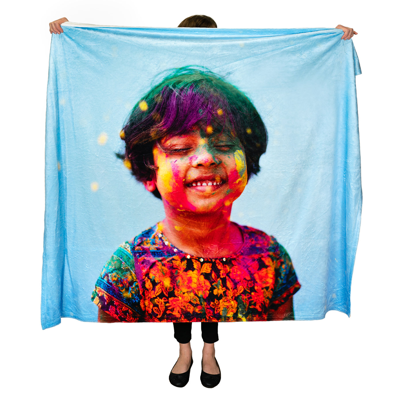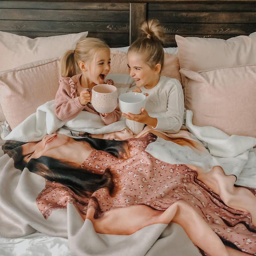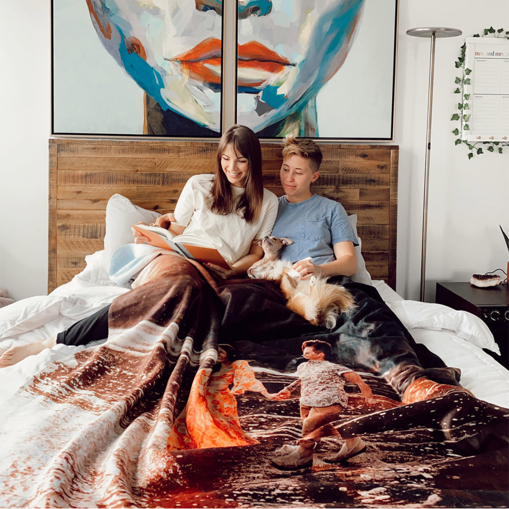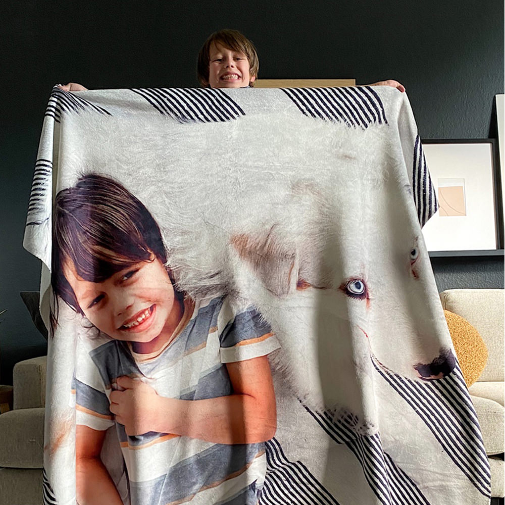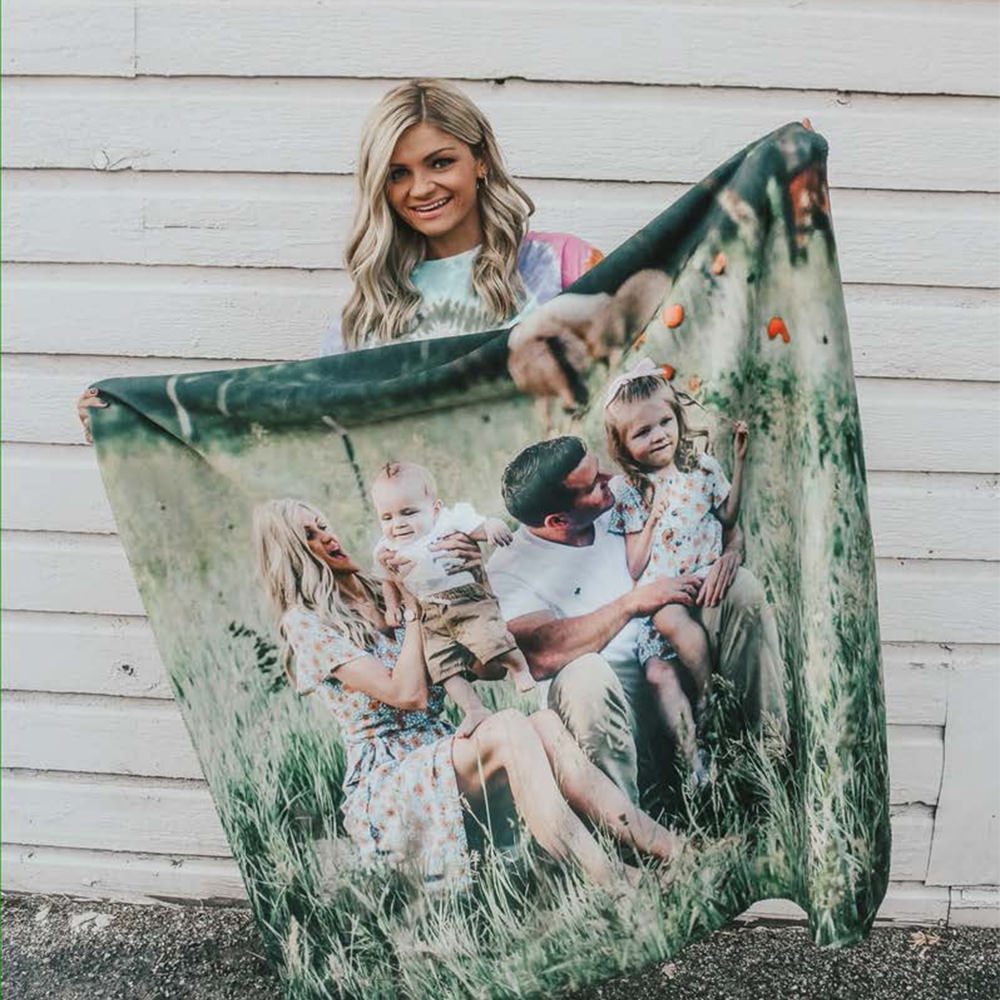 Our custom fleece blankets are great for customers to display large photos and images. These mink velveteen fleece blankets incorporate JONDO’s signature high-quality custom blanket printing and saturated colors with an unparalleled level of comfort. As compared to sherpa blankets, fleece blankets are a lighter-weight option. Custom-printed fleece blankets have one-sided printing with straight corners.